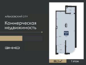 Помещение свободного назначения на 1 этаже, общая площадь 88.3 кв.м. Стоимость помещения 21,192,000 руб., цена за кв.м 240,000 руб.