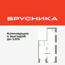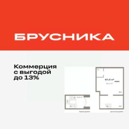 Помещение свободного назначения на -1 этаже, общая площадь 67.88 кв.м., без отделки. Стоимость помещения 12,470,000 руб., цена за кв.м 183,706 руб.