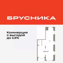 Помещение свободного назначения на 1 этаже, общая площадь 67.06 кв.м., без отделки. Стоимость помещения 13,870,000 руб., цена за кв.м 206,829 руб.
