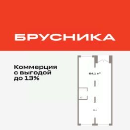Помещение свободного назначения на 1 этаже, общая площадь 84.2 кв.м., без отделки. Стоимость помещения 17,620,000 руб., цена за кв.м 209,263 руб.