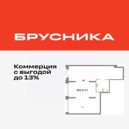 Помещение свободного назначения на 1 этаже, общая площадь 83.37 кв.м., без отделки. Стоимость помещения 15,720,000 руб., цена за кв.м 188,557 руб.