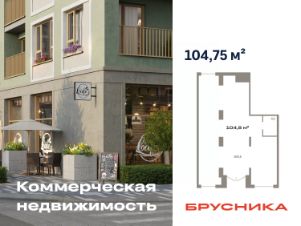 Помещение свободного назначения на 1 этаже, общая площадь 104.75 кв.м., без отделки. Стоимость помещения 23,670,000 руб., цена за кв.м 225,966 руб.