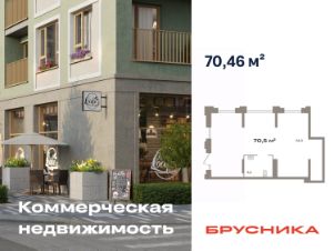 Помещение свободного назначения на 1 этаже, общая площадь 70.46 кв.м., без отделки. Стоимость помещения 13,810,000 руб., цена за кв.м 195,997 руб.
