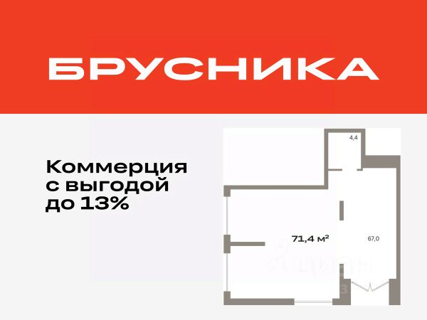 Помещение свободного назначения на 1 этаже, общая площадь 67.99 кв.м., без отделки. Стоимость помещения 14,060,000 руб., цена за кв.м 206,795 руб.