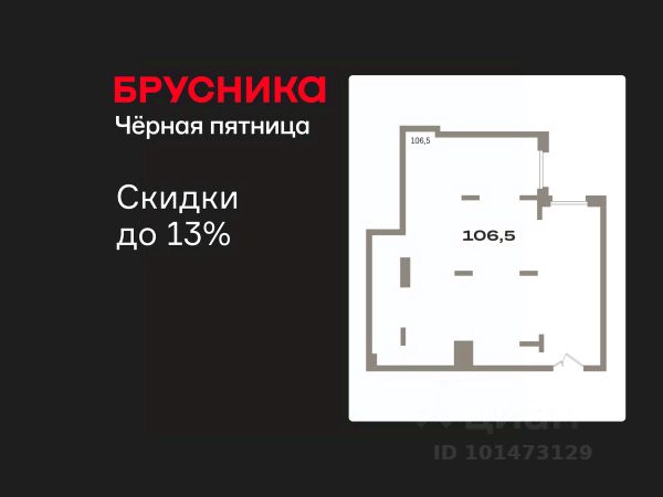 Помещение свободного назначения на 2 этаже, общая площадь 106.5 кв.м., без отделки. Стоимость помещения 27,600,000 руб., цена за кв.м 259,154 руб.
