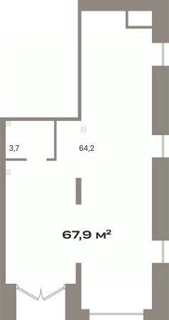 Помещение свободного назначения на -1 этаже, общая площадь 67.88 кв.м., без отделки. Стоимость помещения 12,470,000 руб., цена за кв.м 183,706 руб.