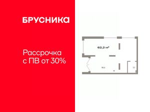 Помещение свободного назначения на 1 этаже, общая площадь 62.16 кв.м., без отделки. Стоимость помещения 12,880,000 руб., цена за кв.м 207,207 руб.