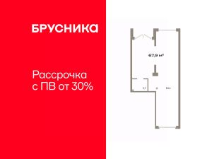 Помещение свободного назначения на -1 этаже, общая площадь 67.88 кв.м., без отделки. Стоимость помещения 12,470,000 руб., цена за кв.м 183,706 руб.
