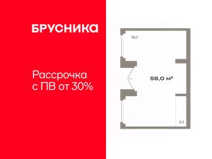 Помещение свободного назначения на 2 этаже, общая площадь 59 кв.м., без отделки. Стоимость помещения 19,160,000 руб., цена за кв.м 324,745 руб.