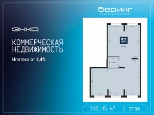 Помещение свободного назначения на 1 этаже, общая площадь 102.45 кв.м., без отделки. Стоимость помещения 20,831,000 руб., цена за кв.м 203,328 руб.