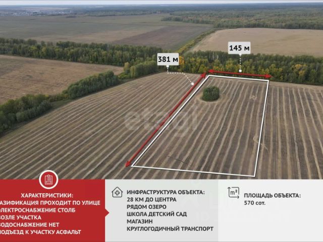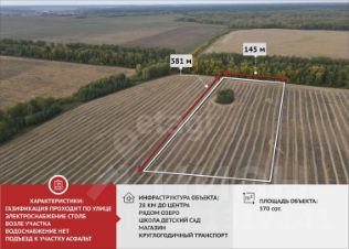 Участок 5,7 Га на Московском тракте в деревне Малиновка (до города 28 километров). Ровный, разработанный с удобным подъездом с трассы. Из коммуникаций в деревне есть: электричество, газ и водопровод. ("Земельный участок, категория земель: земли сельскохозяйственн...