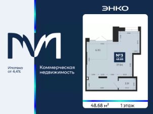 Помещение свободного назначения на 1 этаже, общая площадь 48.68 кв.м. Стоимость помещения 11,090,000 руб., цена за кв.м 227,814 руб.