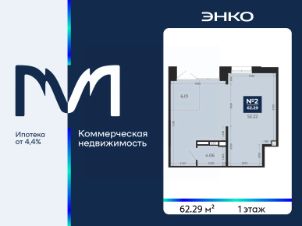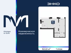 Помещение свободного назначения на 1 этаже, общая площадь 62.22 кв.м. Стоимость помещения 12,910,000 руб., цена за кв.м 207,489 руб.