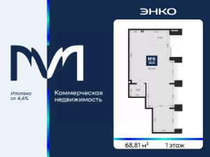 Помещение свободного назначения на 1 этаже, общая площадь 68.81 кв.м. Стоимость помещения 14,000,000 руб., цена за кв.м 203,458 руб.