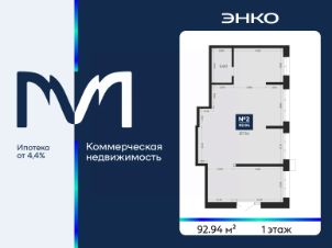 Помещение свободного назначения на 1 этаже, общая площадь 92.94 кв.м. Стоимость помещения 17,040,000 руб., цена за кв.м 183,344 руб.