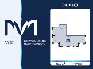 Помещение свободного назначения на 1 этаже, общая площадь 87.8 кв.м., без отделки. Стоимость помещения 20,500,000 руб., цена за кв.м 233,485 руб.
