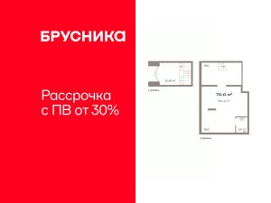 Помещение свободного назначения на -1 этаже, общая площадь 70.06 кв.м., без отделки. Стоимость помещения 9,560,000 руб., цена за кв.м 136,454 руб.