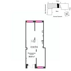 - Расположено в высоком цоколе здания с отличным естественным освещением.