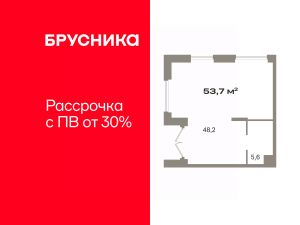 Помещение свободного назначения на 1 этаже, общая площадь 53.7 кв.м., без отделки. Стоимость помещения 16,700,000 руб., цена за кв.м 310,986 руб.