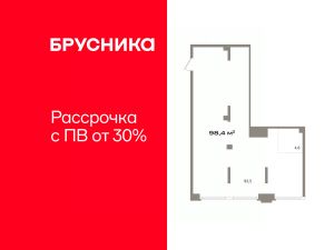 Помещение свободного назначения на 1 этаже, общая площадь 99.3 кв.м., без отделки. Стоимость помещения 30,740,000 руб., цена за кв.м 309,566 руб.
