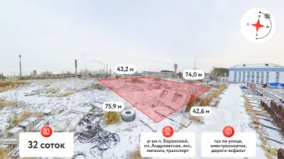 Крупный земельный участок площадью 38,4 гектара, расположен в районе села Борки по Тобольскому тракту. От тракта до участка 1 км по грунтовой дороге. Вдоль дороги электрические столбы. На участке есть лес, рядом озеро Долгое, которое...