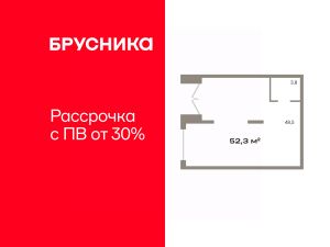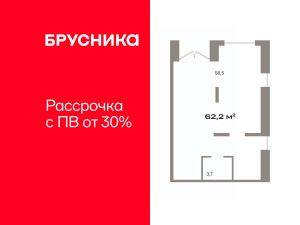 Помещение свободного назначения на 1 этаже, общая площадь 62.2 кв.м., без отделки. Стоимость помещения 14,330,000 руб., цена за кв.м 230,385 руб.