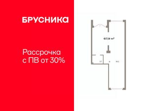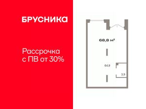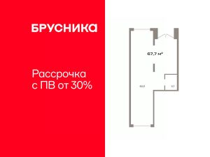 Помещение свободного назначения на 1 этаже, общая площадь 67.7 кв.м., без отделки. Стоимость помещения 15,550,000 руб., цена за кв.м 229,689 руб.