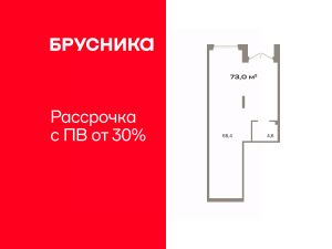 Помещение свободного назначения на 1 этаже, общая площадь 73 кв.м., без отделки. Стоимость помещения 20,060,000 руб., цена за кв.м 274,794 руб.