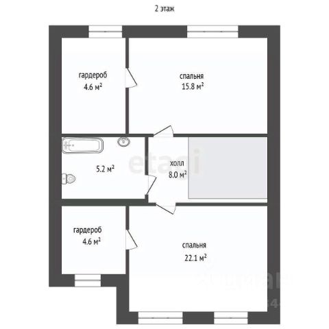 На 2-ом этаже: 3 спальни 2- по 15 м. Кв, и комната 10 м. Кв, большой сан. Узел с ванной.