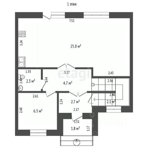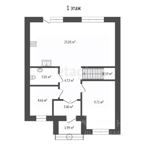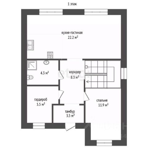 На первом этаже находится большая и уютная кухня- гостиная, санузел с постирочной.