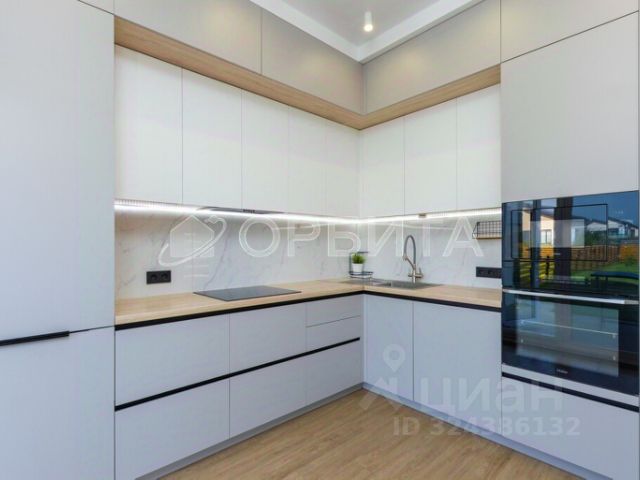 1 этаж: просторная кухня-гостиная 53 кв м, это функциональное пространство, где гармонично сочетаются зона для приготовления пищи, обеденная зона и уютная гостиная с мягким диваном. Здесь выполнено все с комфортом для всей семьи и продуманной эргономикой. Вместительные шкафы, где спрятана вся мелкая бытовая техника и ничего не загромождает ваш взгляд. Обеденная зона на 6-8 персон, стол из натурального мрамора, ножки из натурального камня. Панорамные окна с видом на зеленую зону. На 1 этаже также имеется гостевой сан узел, котельная, где установлены: газовый котел Baxi, водонагреватель на 80 л, фильтрация воды, насос повышения давления воды.