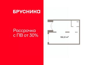 Помещение свободного назначения на 1 этаже, общая площадь 62.22 кв.м., без отделки. Стоимость помещения 14,330,000 руб., цена за кв.м 230,311 руб.
