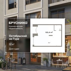 Помещение свободного назначения на 1 этаже, общая площадь 52.4 кв.м., без отделки. Стоимость помещения 10,980,000 руб., цена за кв.м 209,541 руб.