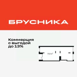 Помещение свободного назначения на 1 этаже, общая площадь 77.1 кв.м., без отделки. Стоимость помещения 16,000,000 руб., цена за кв.м 207,522 руб.
