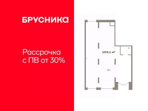 Помещение свободного назначения на 1 этаже, общая площадь 103.1 кв.м., без отделки. Стоимость помещения 21,140,000 руб., цена за кв.м 205,043 руб.