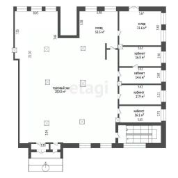 Помещение свободного назначения на 1 этаже, общая площадь 131.22 кв.м., без отделки. Стоимость помещения 32,860,000 руб., цена за кв.м 250,419 руб.