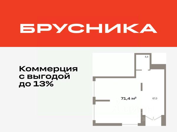 Помещение свободного назначения на 1 этаже, общая площадь 71.78 кв.м., без отделки. Стоимость помещения 16,440,000 руб., цена за кв.м 229,033 руб.