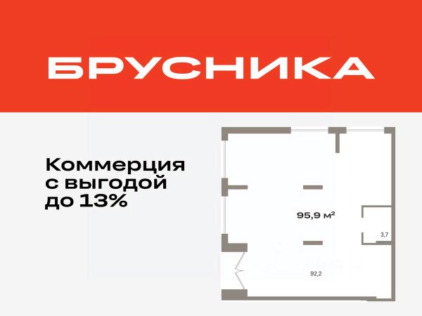 Помещение свободного назначения на 1 этаже, общая площадь 95.9 кв.м., без отделки. Стоимость помещения 21,750,000 руб., цена за кв.м 226,798 руб.