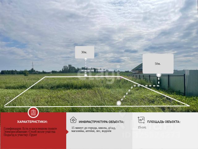 Участок 15 соток ИЖС в развитом поселке (15 км от города). Все коммуникации и инфраструктура здесь и сейчас! Мечтаете о собственном доме за городом, но без компромиссов с комфортом? Этот участок — то, что вы искали! Наше главное преимущество — не нужно ждать годы! Все самое важное уже есть: Инфраструктура для жизни: В пешей доступности школа, детский сад, современный торговый центр. Не нужно каждый раз ехать в город за продуктами или вести детей на учебу. Отличная дорога: К участку ведет качественный асфальт. Вы будете дома в любую погоду, без грязи и пыли. Важные коммуникации: По границе участка проходят магистральный газ и электричество. Это огромная экономия времени, нервов и денег на этапе строительства. Площадь: 15 соток — достаточно места для большого дома, сада, огорода, бани и зоны отдыха. Назначение: ИЖС (индивидуальное жилищное строительство). Участок ровный, сухой, правильной формы. Экология и тишина за городом, при этом полная самостоятельность и отсутствие соседей за стенкой. Район перспективный, с развитой инфраструктурой и надежными соседями. Рассмотрю разумный торг для серьезного покупателя. МЫ ГАРАНТИРУЕМ ФИНАНСОВУЮ БЕЗОПАСНОСТЬ ДЛЯ НАШИХ КЛИЕНТОВ. Код пользователя: 194539 Номер в базе: 10536603