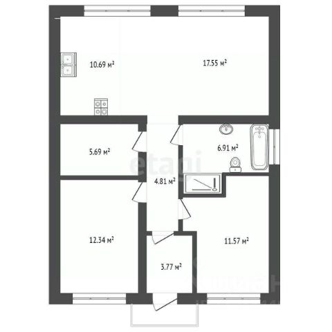 • Функциональная планировка: Большой холл, просторная гостиная, отдельная зона кухни для уютных семейных вечеров.