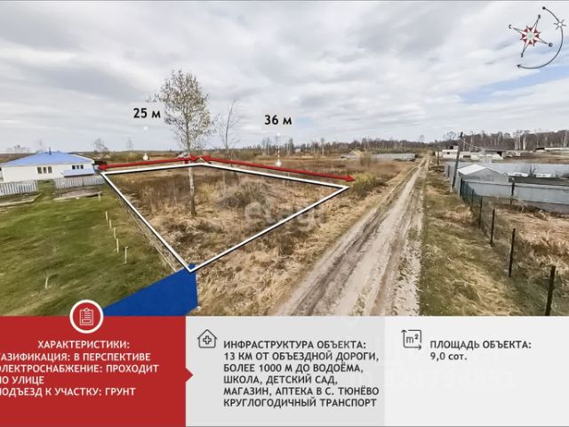 Продается замечательный земельный участок площадью 9 соток, расположенный в живописном селе Тюнево Нижнетавдинского района Тюменской области. Этот участок идеальное место для строительства загородного дома, где вы сможете наслаждаться спокойствием и красотой природы. В окружении леса вас всегда будут радовать свежий воздух и звуки природы, создавая атмосферу уединения и расслабления. Удобное расположение участка позволит вам легко добираться до города всего за 20 минут по Великанскому тракту. Неподалеку находится озеро Сундукуль, идеально подходящее для отдыха и приятных прогулок на природе. Развита инфраструктура и наличие автобусного сообщения обеспечат комфортный доступ к необходимым сервисам и заведениям. Участок имеет юридический статус садоводства, что позволит вам спокойно заниматься садоводством или строить свой загородный дом. Дорога к участку асфальтированная, а также имеется возможность подключения электричества и газа, что делает ваше будущее жилье еще более комфортным. Водоснабжение можно организовать с помощью скважины. Состояние участка не разработан, что дает вам полное поле для творчества и реализации собственных идей по обустройству территории. Мы готовы провести онлайн-показ, чтобы вы могли оценить все преимущества этого участка, не выходя из дома. Не упустите шанс приобрести участок в этом живописном месте и создать свой идеальный загородный дом! Звоните, чтобы узнать больше!