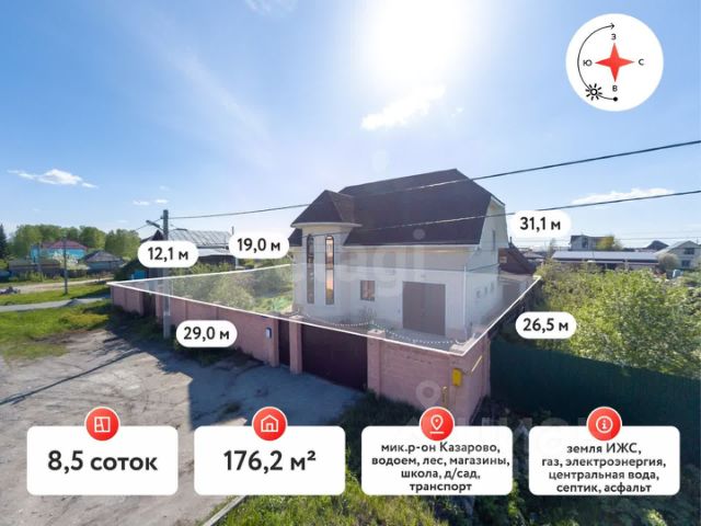 Продаётся великолепный капитальный коттедж в живописном районе Казарово! Этот уютный дом площадью 121 м² — идеальное место для комфортной жизни вашей семьи. Он построен из качественных керамзитоблоков, утеплён современных пеноплексом и облицован кирпичом, что гарантирует тепло и уют в любое время года. Вас порадует аккуратное крыльцо и прочная отмостка, которые добавляют эстетики и функциональности. Функциональная планировка дома продумана до мелочей. На первом этаже расположены просторная кухня-гостиная (25 м²), жилая комната (12,9 м²), а также санузел и котельная. Второй этаж предлагает три светлые спальни (12 м², 13,9 м² и 12,4 м²) и большую ванную комнату, где вы сможете расслабиться после долгого дня. Коммуникации дома на высшем уровне: центральное водоснабжение, газовое отопление с тёплыми полами на первом этаже, септик объёмом 10 м и полностью разведённая электроэнергия. Внутренний ремонт выполнен по индивидуальному дизайн-проекту с использованием качественных и дорогих материалов, что создаёт атмосферу уюта и стиля. Участок ухожен и облагорожен: здесь растут плодовые деревья (слива, груша, яблоня, смородина, вишня), которые уже радуют урожаем. На территории также построена баня из бруса, есть теплица и навес для автомобиля — всё, что нужно для комфортной загородной жизни! Район Казарово обладает развитой инфраструктурой: в 10 минутах пешком находится школа, аптеки, продуктовые магазины, торговый центр и пекарня. Здесь вы сможете наслаждаться спокойствием загородной жизни, не отказываясь от всех удобств городской жизни. Не упустите шанс стать владельцем этого замечательного коттеджа! Звоните прямо сейчас, чтобы записаться на просмотр и сделать шаг к своей мечте! МЫ ГАРАНТИРУЕМ ФИНАНСОВУЮ БЕЗОПАСНОСТЬ ДЛЯ НАШИХ КЛИЕНТОВ. Код пользователя: 124575 Номер в базе: 1629329 Загородная недвижимость в микрорайоне Казарово в городе Тюмень.