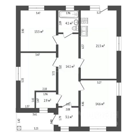 3 спальни + просторная кухня гостиная + санузел + бытовая комната, которую можно переделать во 2 с/у