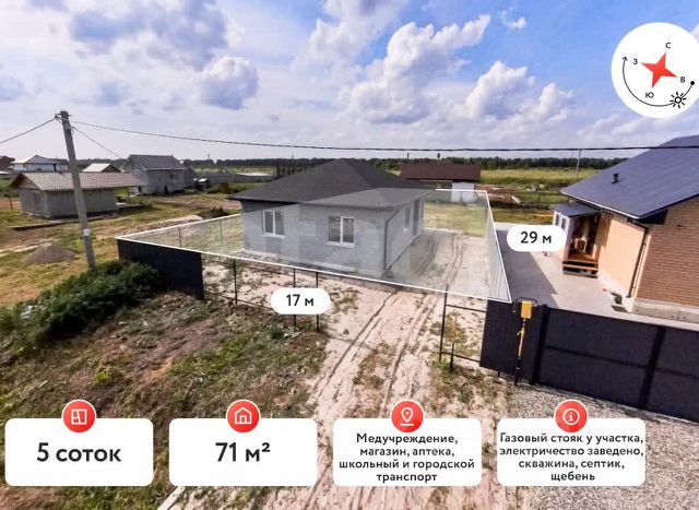Арт. 101365917 подходит по семейной ипотеке и по сельхоз К ПРОДАЖЕ ПРЕДЛАГАЕТСЯ ДОМ 100 М2 НА УЧАСТКЕ 5 СОТ В С, ГУСЕВО О ДОМЕ: - Одноэтажный, общая площадь 100 м2; - Конструктив: фундамент монолитная плита, стены из керамзитоблока 40 см плюс вата 10 см, облицовка декоративной штукатуркой, кровля - металлочерепица, карнизы подшиты, установлена вентиляция и водосточная система; - Функциональная планировка: просторная кухня-гостиная 12,7 м2 с выходом на террасу, две спальни, 2 сан узла, котельная, гардеробная, гараж с электрическими подъёмными воротами Doorhan; - Отопление в доме - тёплый пол. Пол и потолок подготовлены под чистовое покрытие. - Дом огорожен со всех сторон металлическим штакетником.; - Водоснабжение - Скважина; - Электричество подключено; - Канализация - Септик ОБ УЧАСТКЕ: - Площадь: 5 сот; - Категория земель: ИЖС; - Участок правильной прямоугольной формы; - Место высокое. - Задняя сторона участка граничит с водоемом. Места на участке достаточно, чтобы расположить барбекю, беседку, небольшой бассейн. О РАЙОНЕ: - Дом расположен в муниципальном образовании - дороги, электричество, свет на улицах есть, ходит школьный автобус. Одновременно с этим дом находится экологическом районе, в шаговой близости к лесу О СДЕЛКЕ: - Полное юридическое сопровождение; - Помощь в оформлении и одобрении ипотеки; Звоните прямо сейчас и записывайтесь на просмотр!!!!!!!!!!