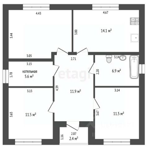 Функциональная толковая планировка дома - формат 3+ включает в себя кухню-гостиную площадью более 14 кв.м., две спальни по 11 кв.м. и одна спальня 14 кв.м..