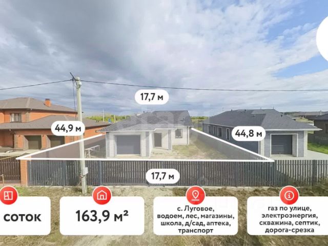 Продается готовый дом в селе Луговое 7км от города по шикарной четырех полосной асфальтированной дороге. В селе есть школа, садик, мед пункт, сетевые магазины ( монетка, магнит) аптека. В село ходят рейсовые автобусы и маршрутное такси Также рядом лес , река , озера Есть все для комфортной загородной жизни . Дом построен из керамзитоблок облицован кирпичом.в доме 4 комнаты по 15м2 ,кухня гостинная 38 м2 есть гараж. Все плюсы дома не описать поэтому звоните приезжайте на просмотр. Номер предложения: 56379.