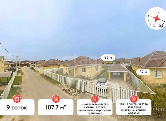 Дом выполнен из керамзитоблока и облицован керамическим кирпичом, отопление теплый пол, вентиляция, стяжка пола , белые стены, вода, свет, натяжной потолок , септик 9 кубов, скважина 35 метров, участок