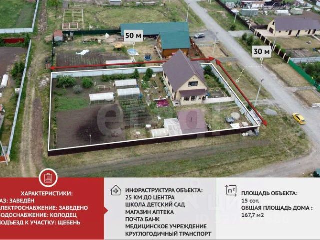 Дом площадью 45,1кв.м., 2 жилых комнаты по 16 кв.м., кухня 14 кв.м., прихожая 15 кв.м., санузел. в очень хорошем состоянии. Выполнен косметический ремонт, установлены пластиковые окна. Отопление газовое, дополнительно есть печь. Есть все коммуникации, заведены в дом и в баню: электричество, газ, скважина, колодец, канализация (септик).