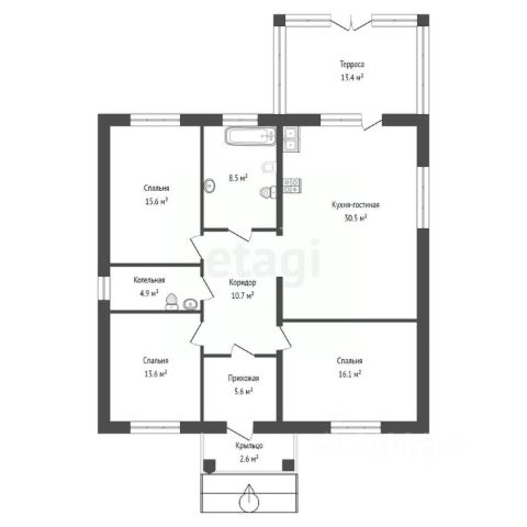 Из дома через холл можно пройти в теплый гараж на две машины.