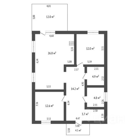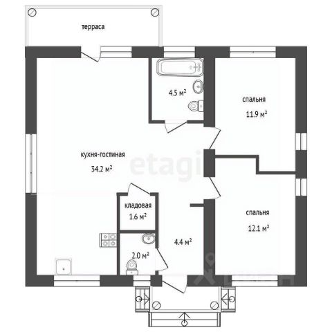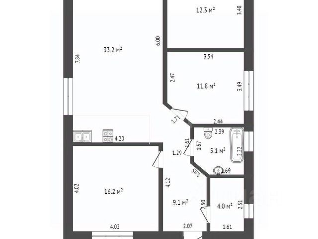 3 cпальни: 11,8 + 12,3 + 16,2 кв.м.